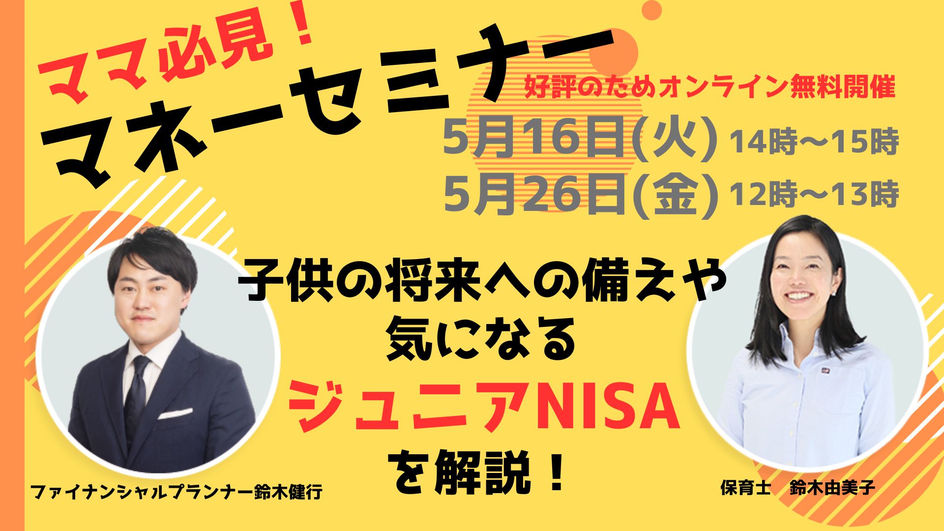 【5月16日・26日無料オンラインセミナー】マネーセミナー|ママ必見!子供の将来への備えや、気になるジュニアNISAを解説!