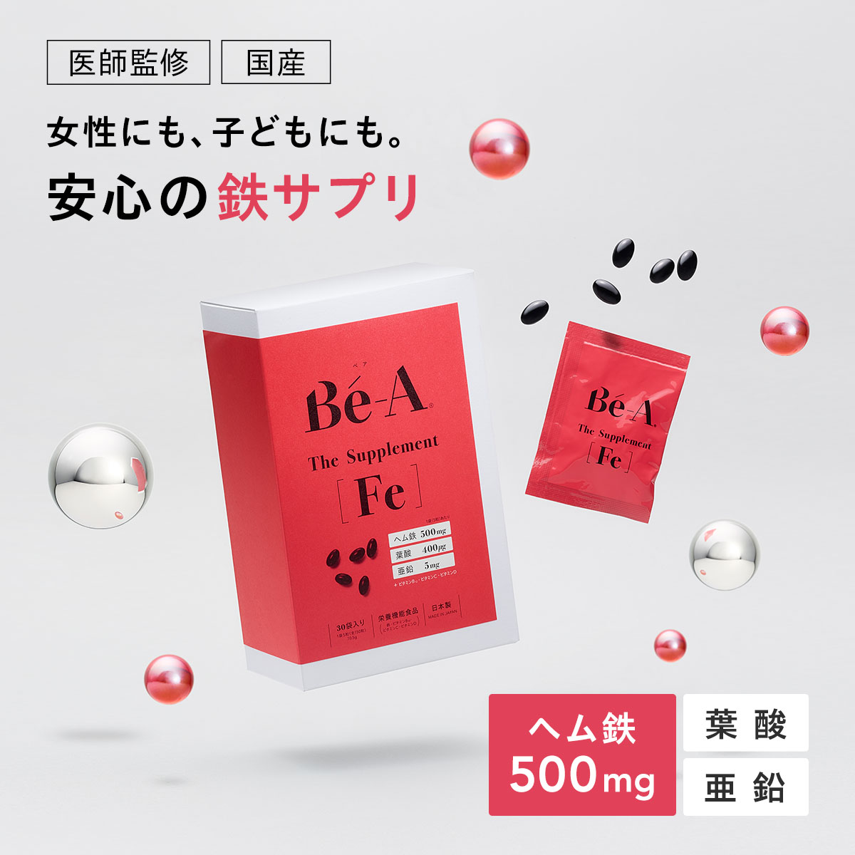 【医師監修・国産】女性や子どもに安心なヘム鉄サプリ。葉酸・亜鉛・ビタミン3種も配合
